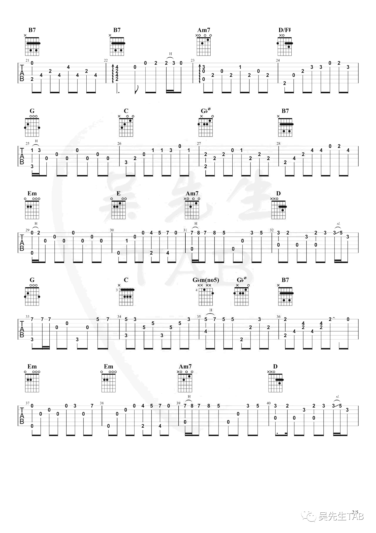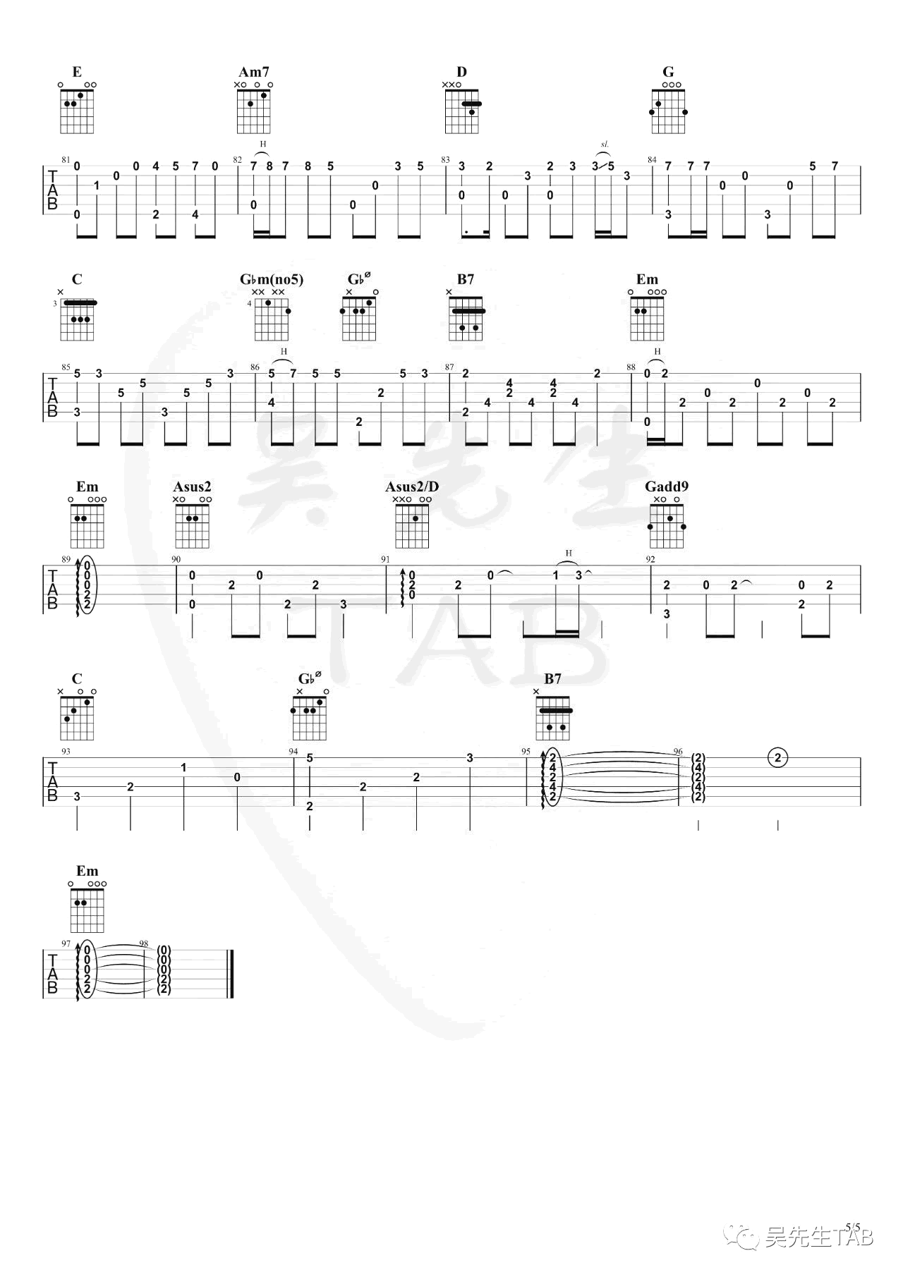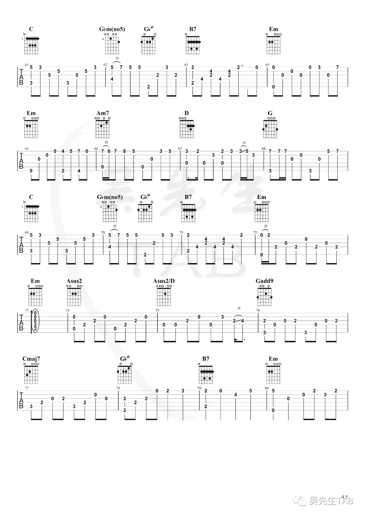 车站指弹谱_李健《车站》吉他独奏谱_完整指弹吉他谱 时间:2021-06-11 来源:吴先生TAB 点击:次 《车站》吉他指弹谱,改编自李健在《歌手》舞台深情演绎的歌曲,旋律来自于是日本竹内玛莉亚歌曲《駅》。车站吉他独奏谱,CAPO夹四品,完整版共五张图片谱例。易唱网整理上传,感谢吴先生TAB编配分享。 悠扬的曲调温暖沉静,让人在诗般的意境中体味人生百味,仿佛看了一部关于伤感别离的电影。你是否也曾有一段难舍难别的车站分离,你是否还曾记得那个她?