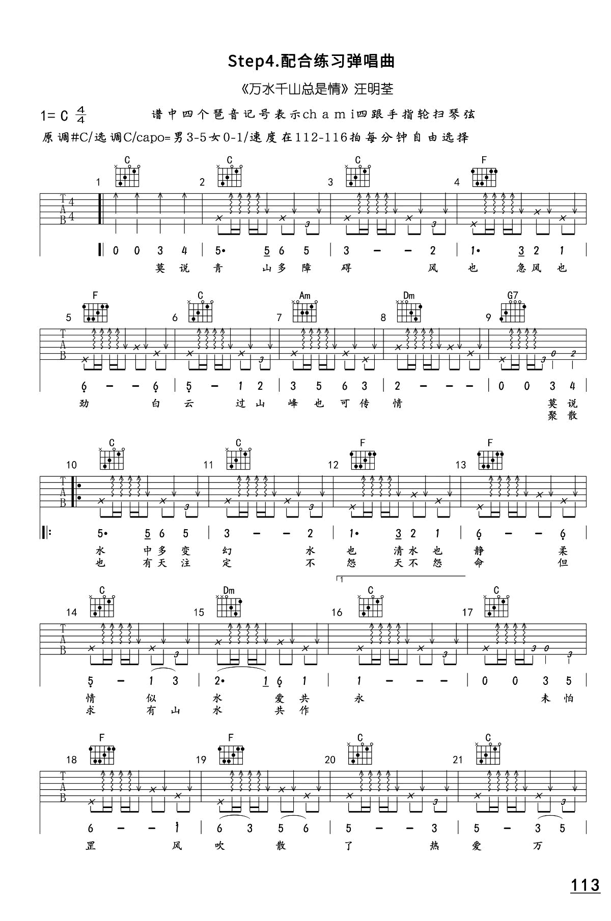 皇冠网新2-手机APP下载-易唱网echangwang.com 时间:2021-08-18 来源:深蓝雨吉他 点击:次 万水千山总是情吉他谱,汪明荃演唱的一首经典粤语歌曲,同名香港电视剧主题曲。万水千山总是情吉他六线谱,C调指法编配,两张弹唱图片谱。感谢深蓝雨吉他出品,易唱网整理更新。 这首歌曲是《新版基本功视频教程》里面的一首练习曲,收录在第31课,这堂课的教学目标在于学习右手外轮指技术,整首歌曲演奏相对简单,前提是要学习好本堂课的基本功-外轮指,学好了这个技术,这首曲子就非常简单了,词曲虽是歌曲,但是歌词也揭示了某些人生真谛。 欢迎微信关注二维码,加入深蓝雨吉他教学课程