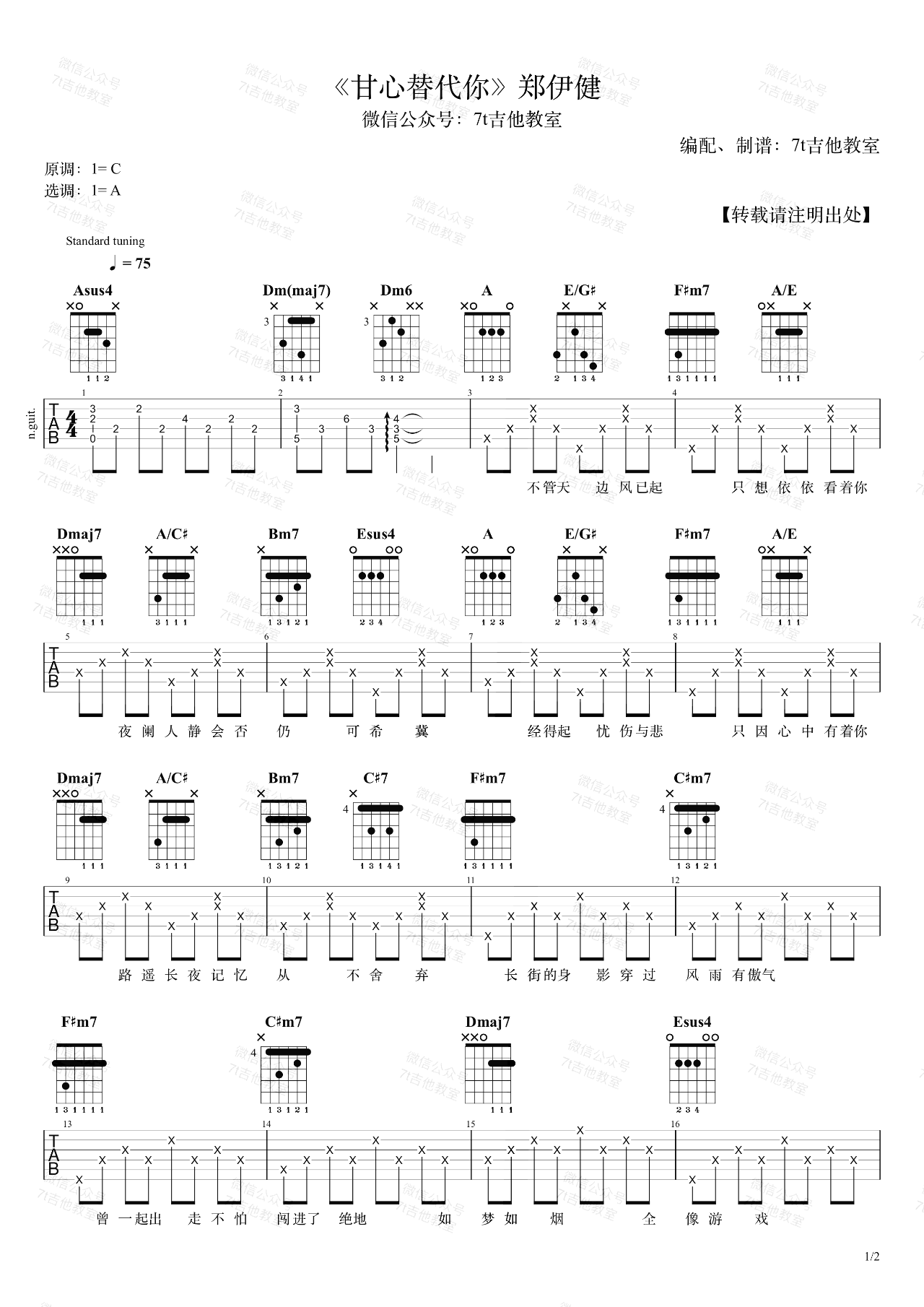 甘心替代你吉他谱_郑伊健_C调_弹唱教学视频