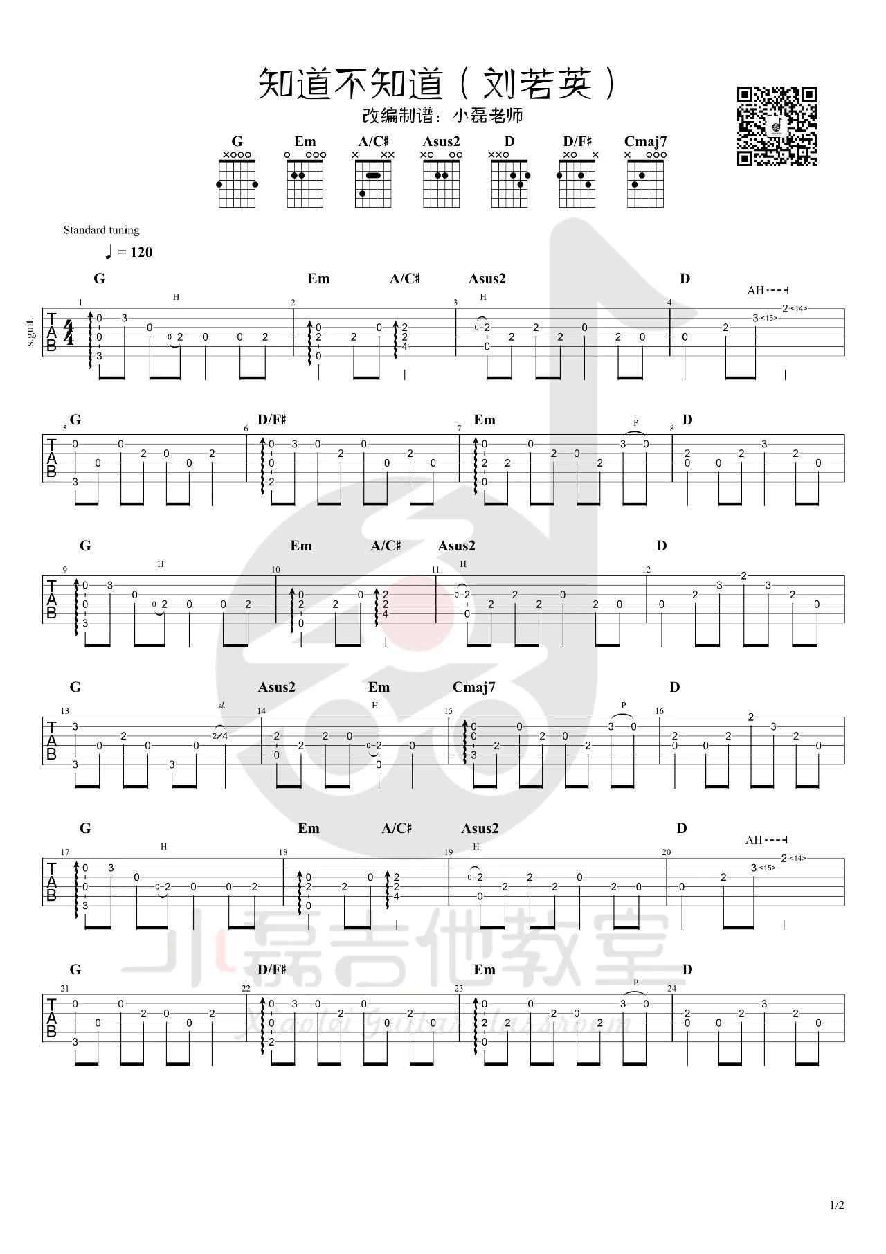 知道不知道指弹谱_刘若英_吉他独奏谱_指弹教学视频 时间:2021-08-22 来源:小磊吉他 点击:次 知道不知道指弹吉他谱,刘若英献唱电影《天下无贼》主题曲,曲调改编自我们熟悉的信天游民歌曲调。知道不知道吉他独奏谱,两张图片谱。感谢小磊吉他编配出品,易唱网整理更新。 一首非常经典的电影插曲改编而来的指弹曲送给大家消消暑,旋律太美了,怎么能错过指弹版。喜欢的琴友们配合曲谱,跟随老师的教学视频练习起来吧。