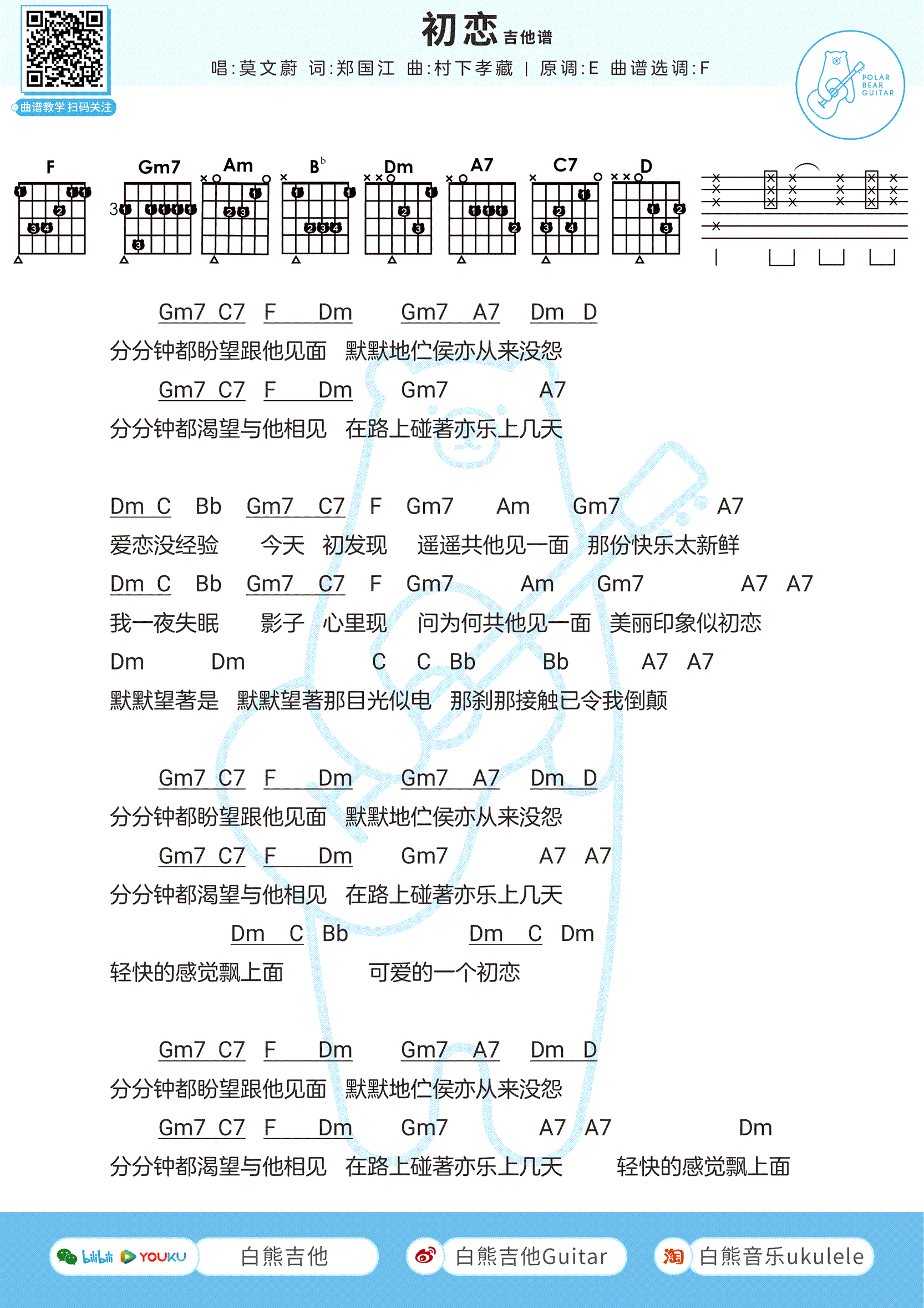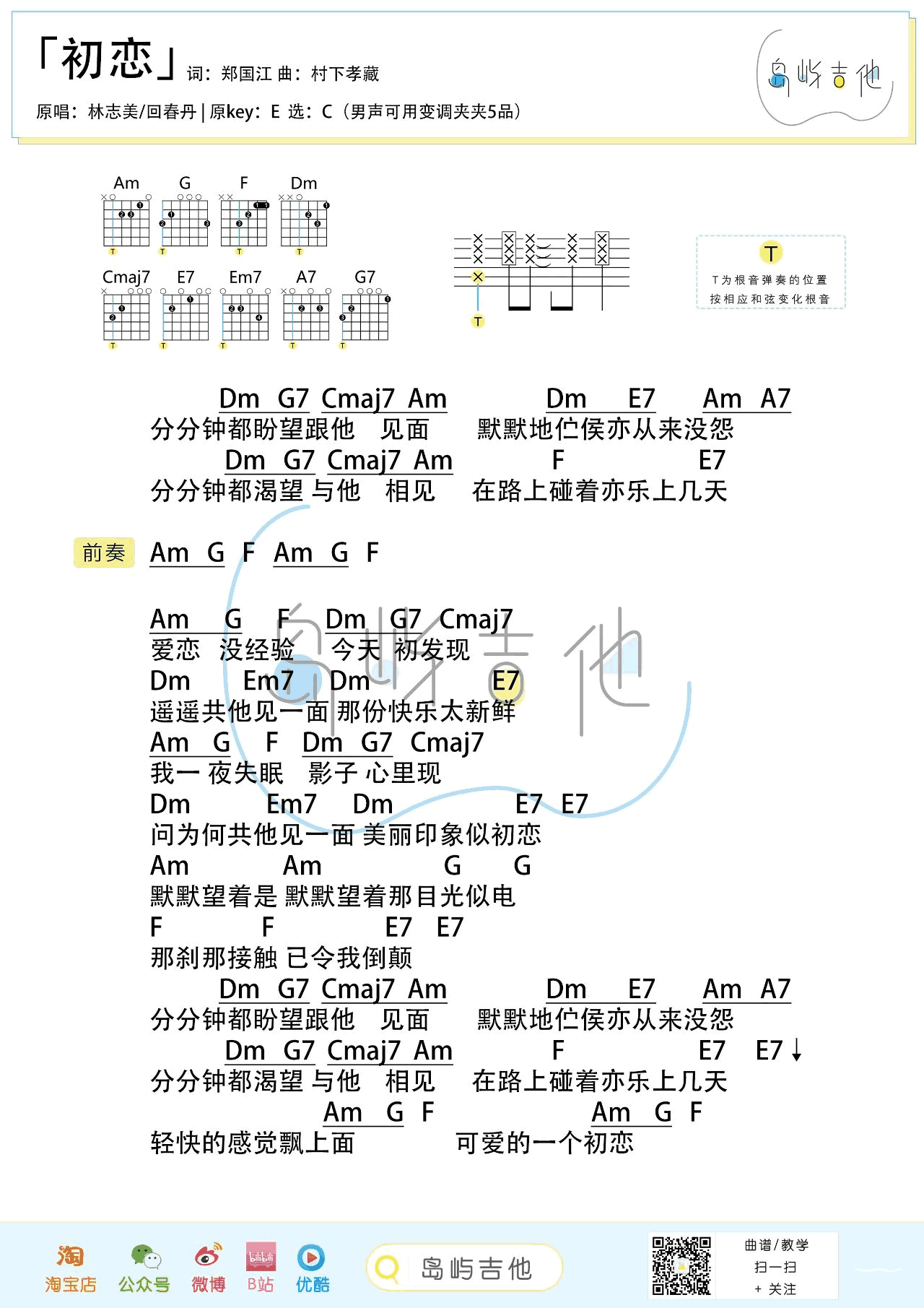 乐鱼体育网址-手机APP下载-易唱网echangwang.com 时间:2021-09-08 来源:岛屿吉他/白熊音乐 点击:次 初恋吉他谱,回春丹翻唱的一首经典粤语歌曲。初恋吉他弹唱谱,选用C调和F调指法编配,两个版本的和弦图片谱。感谢岛屿吉他和白熊音乐出品分享。易唱网整理更新。 回春丹和星爷的《食神》爱情金曲《初恋》 奇妙联动啦~熟悉的优美旋律,浓浓的复古港风气息,甜蜜温暖的歌词,总会牵引出无数人的故事与回忆。初恋是心里想千遍万遍的存在,即使回不去了,也是一段美好回忆 。