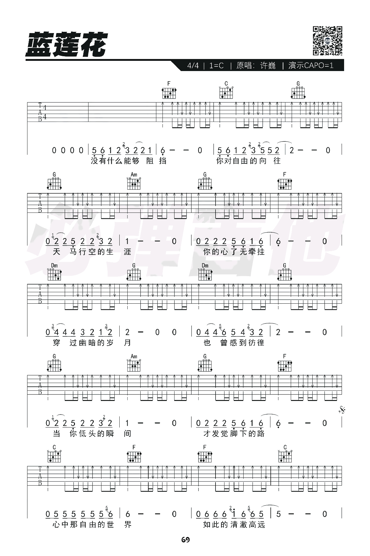 利来电游国际娱乐-手机APP下载-易唱网echangwang.com 时间:2021-09-29 来源:必弹吉他 点击:次 蓝莲花吉他谱,许巍词曲创作的一首经典代表歌曲。蓝莲花吉他弹唱谱,选用C调指法编配,变调夹夹一品,两张图片六线谱。必弹吉他分享,易唱网更新上传。 朴实坚定歌词,柔和平静的旋律,唱出一种坚定不移追求梦想的精神,递进的情感在吉他扫弦中满满绽放,仿佛每一片绚烂的花瓣都是一次呼唤,愿我们的生活都如花般盛开。